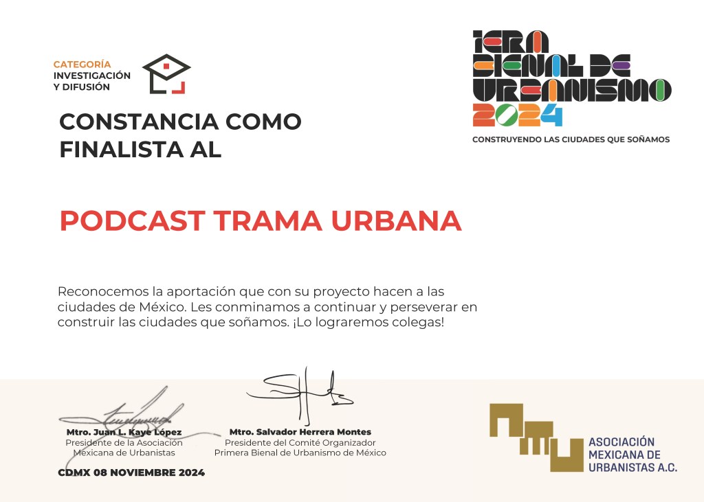 En el 2024, la Asociación Mexicana de Urbanistas (AMU), organismo de promoción y desarrollo del urbanismo en México creada en 1980, convocó a la primera Bienal de Urbanismo de México «Construyendo las ciudades que soñamos»