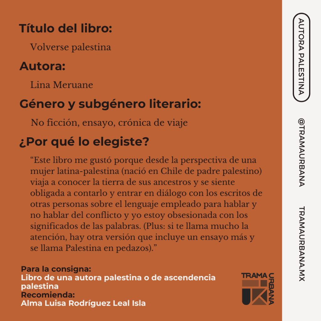 | 2. Un libro de una autora palestina o de ascendencia palestina | Alma Luisa Rodríguez |