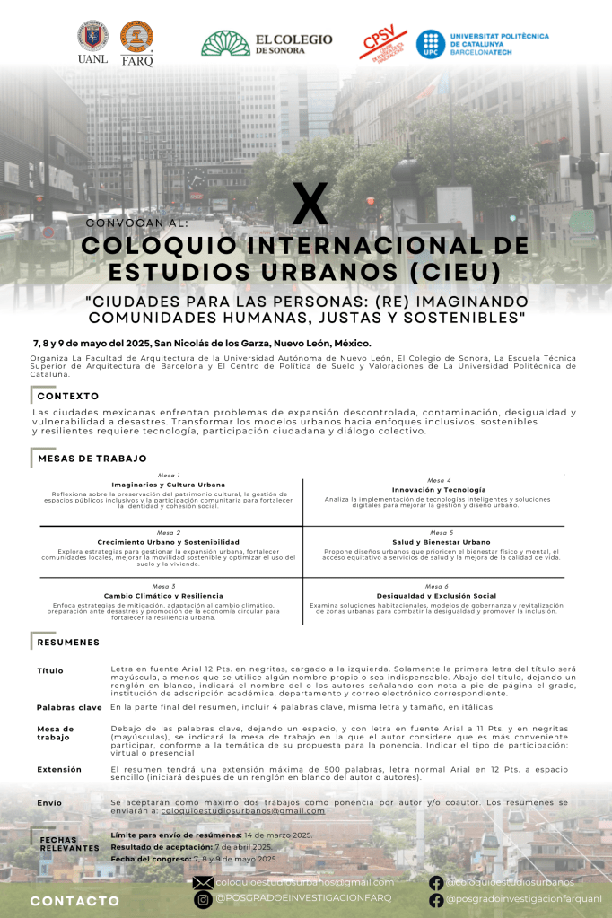 El pasado mes de mayo participamos en el colegio internacional de estudios urbanos organizado por la Facultad de Arquitectura de la Universidad Autónoma de Nuevo León, El Colegio de Sonora, La Escuela Técnica