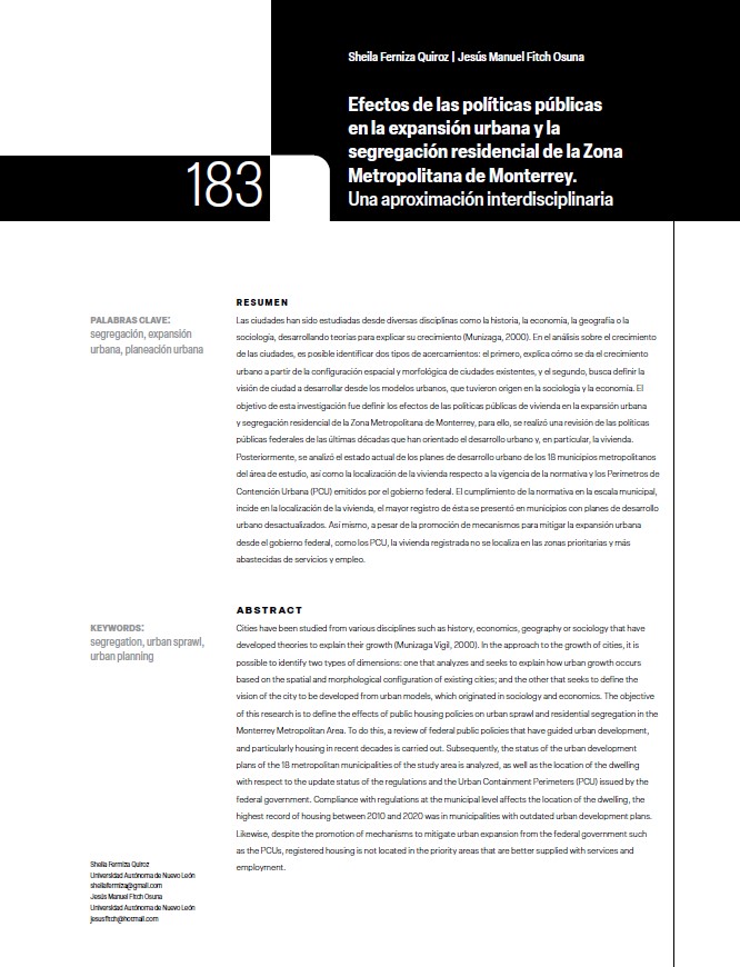 Efectos de las políticas públicas en la expansión urbana y la segregación residencial de la ZM de Monterrey
